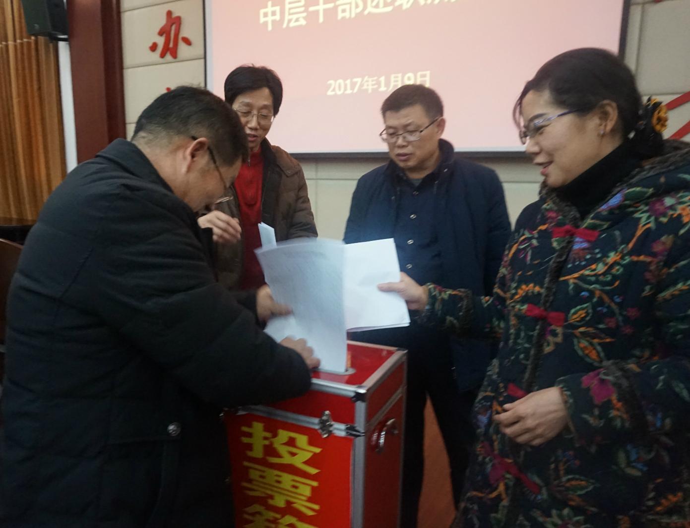 最后,全体与会人员按照客观公正、实事求是的原则,采取无记名投票的方式,对中层干部进行了现场民主测评。