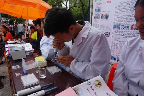 我院的歌舞表演《春之声》和朗诵《我骄傲,我是中国人》展现着职业院校学生朝气蓬勃、得体大方的精神面貌,吸引上千市民驻足欣赏。我院各系部的教学特色成果均在启动仪式上展出,如商贸管理系的茶艺展示、电子电气工程系的家电维修、人文科技系的服装设计展、机械与汽车工程系的模具制造、信息与艺术设计系的室内设计图片展,动物科技系还特意印发了有关禽流感的科普传单,为聚集的市民们耐心讲解。